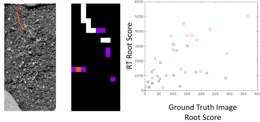 - Noise normalization – Capturing the average magnitude of sensor activity in the first few days of an experiment prior to any possible root interactions helps characterize inherent electrical noise of the local soil structure due to local heterogeneity and daily patterns in the variation of soil moisture. This data can then be used to normalize subsequent signals.